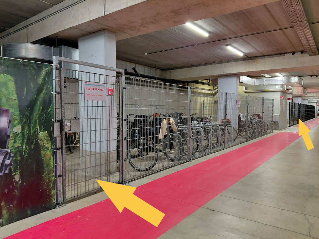 Op de campus: Volg de geel-blauwe pijlen ICTDAG. De fietsenstalling bevindt zich in de 'ondergrondse' autoparking op het gelijkvloers.